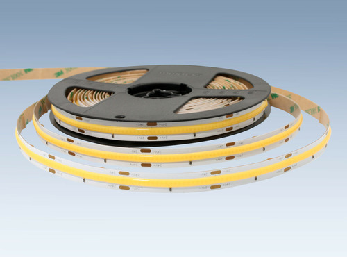 Flexible LED strip, equipped with seamless COB LEDs (528 chips/m), creating an uniform light band without any visible LED dots (totally dot-free), beam angle 180°, CRI > 90, self-adhesive, width 10 mm, dimmable, length 5 m, cuttable each 45 mm