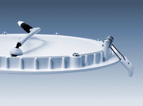 Powerful round LED panel light, slimline, aluminium body