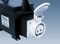 Safety isolating transformer, with plastic shell, IP44, with CEE-socket