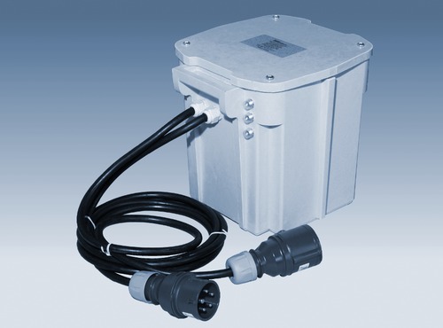 Portable isolationtransformer 230 V, fibreglass reinforced enclosure, waterprotected IP54 (CEE-plug and -coupling IP44), class 2. Suitable for supplying power tools up to 2500 W temporary load. Continuous nominal power 1800 VA